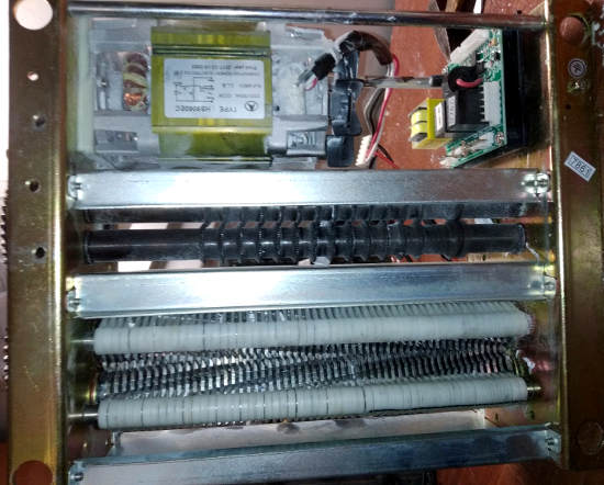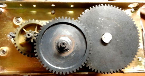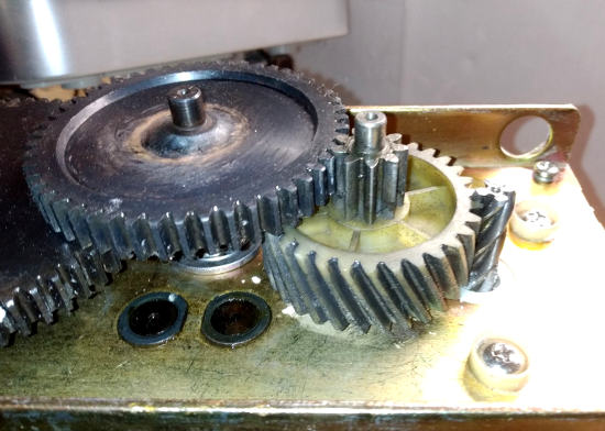 Редуктор шредера состоит из одной пластковой и трех металлических шестерен.
